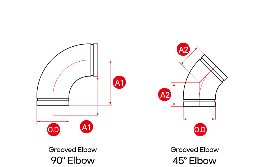 90° Elbow | 45° Elbow | 90° Elbow | 45° Elbow | ||||